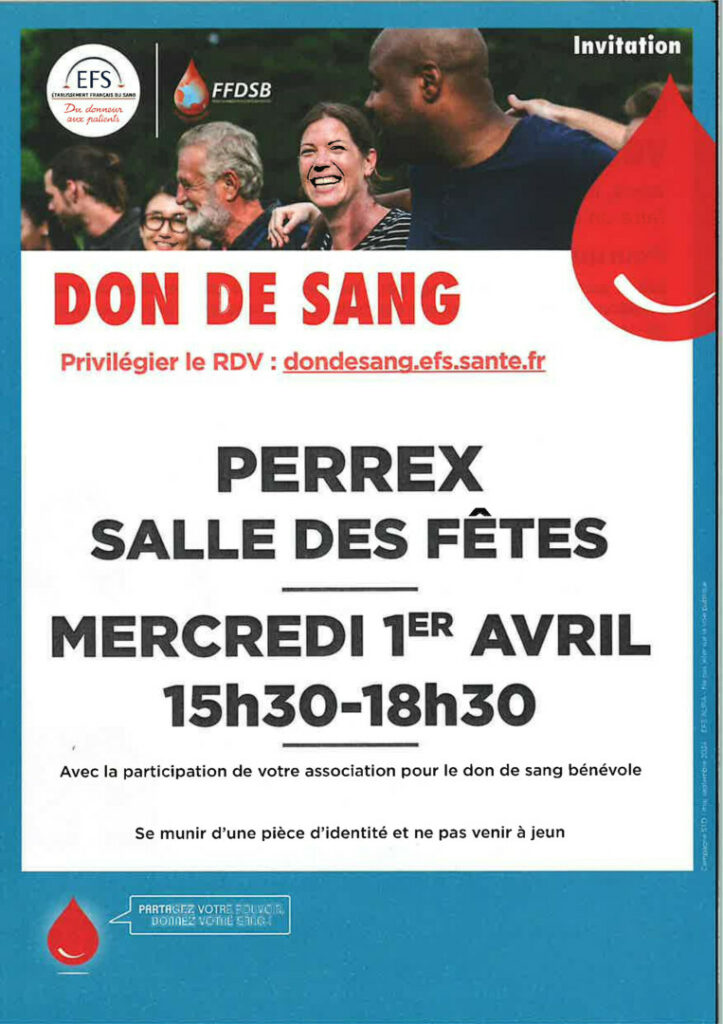 Une collecte de sang est organisée par l’Amicale des Donneurs de Sang de Saint-Cyr, Saint-Genis, Perrex le mercredi 1er avril à Perrex.