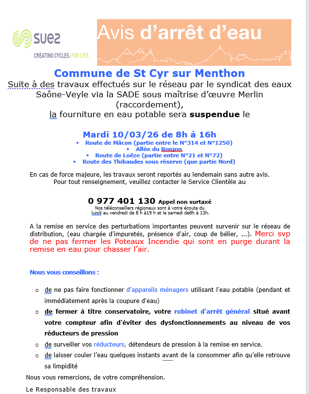 SUEZ nous informe d’une coupure d’eau sur :